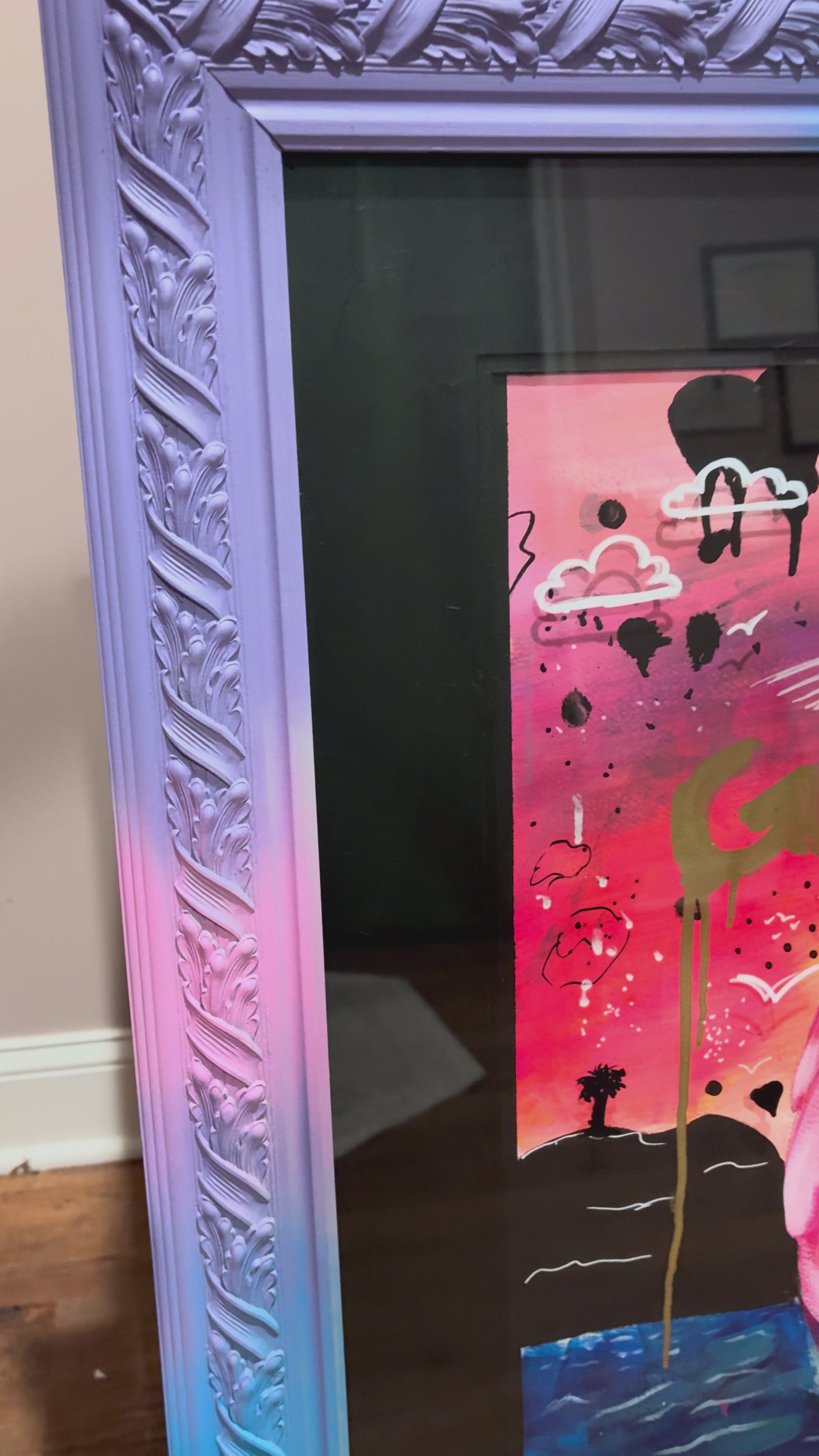 Golden hour is the moment just before the sun sets, when everything outside glows with warm golden light. It is that short transition between day and night that feels peaceful and magical. This piece carries that same feeling. It began as something entirely different and evolved into bright bold colors with a touch of pop art energy. This work is a reminder that beauty can come from unexpected places and that creativity has the power to bring light, color, and generosity into the world.